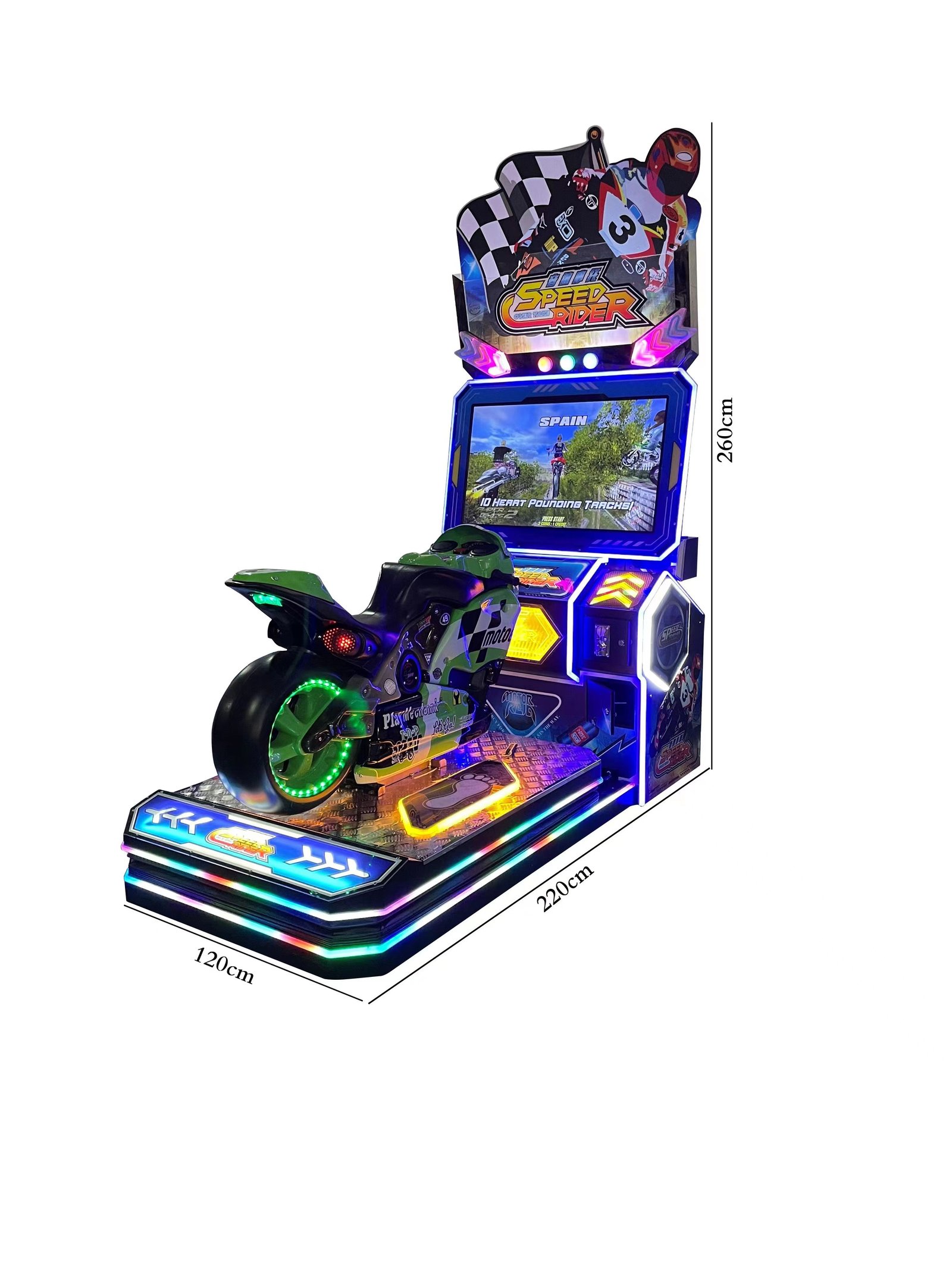 Equipped with a dynamic platform technology, it accurately simulates real ?C life sensations like braking, collision and turning, fully immersing players in the passionate world of motorcycle racing.